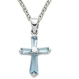 Now aveilable 5/8″ Sterling Silver Baguette Cross Necklace with Aquamarine Cubic Zirconia Stone on 18″ Chain with cheap price.